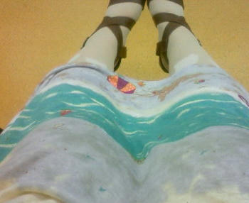 今日のお洋服は、フランシュリッペの、浜辺柄ワンピで、ご機嫌だったのに…。