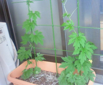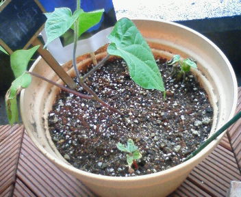 朝顔は、一度枯らしたんだけど、土が悪かったみたいで、枯れた、からっからのをもっかい植えたら、復活した。