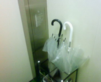 この間の雨の日、エレベータに乗ったら、傘立てがあった。