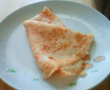 クレープより分厚めに焼いて、砂糖ふりかけて、レモン汁をかけていただきます。